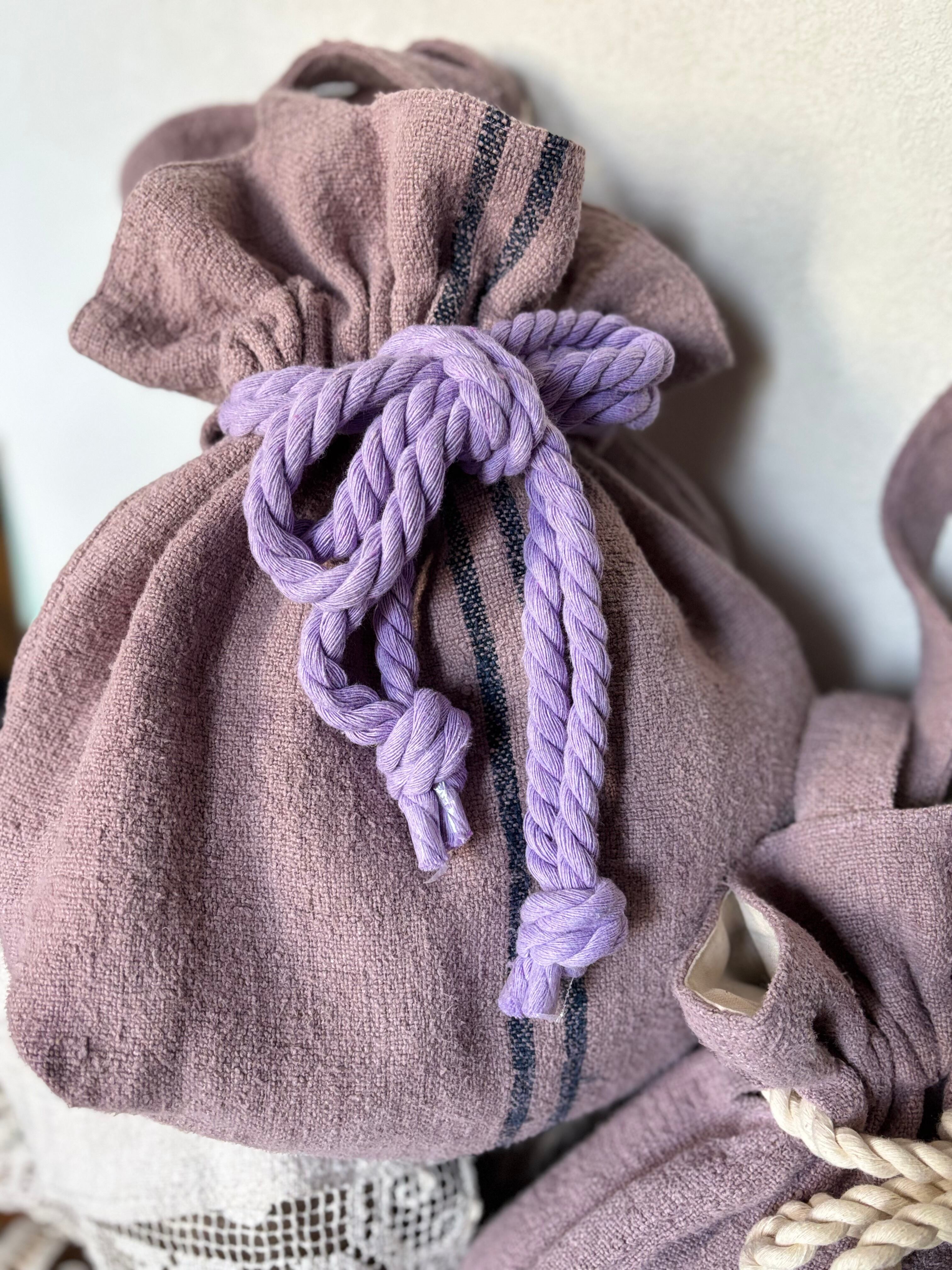 優雅でありながら可愛らしいアジサイ色に染め上げられたコロンとした形が特徴の巾着バッグが新登場!アンティークリネンを使用したナチュラルな印象のこのバッグは、肌触りが柔らかく、さまざまなおしゃれのシーンにぴったりです。大人可愛いデザインが、シンプルなコーディネートにもエレガントさを添えてくれることでしょう。