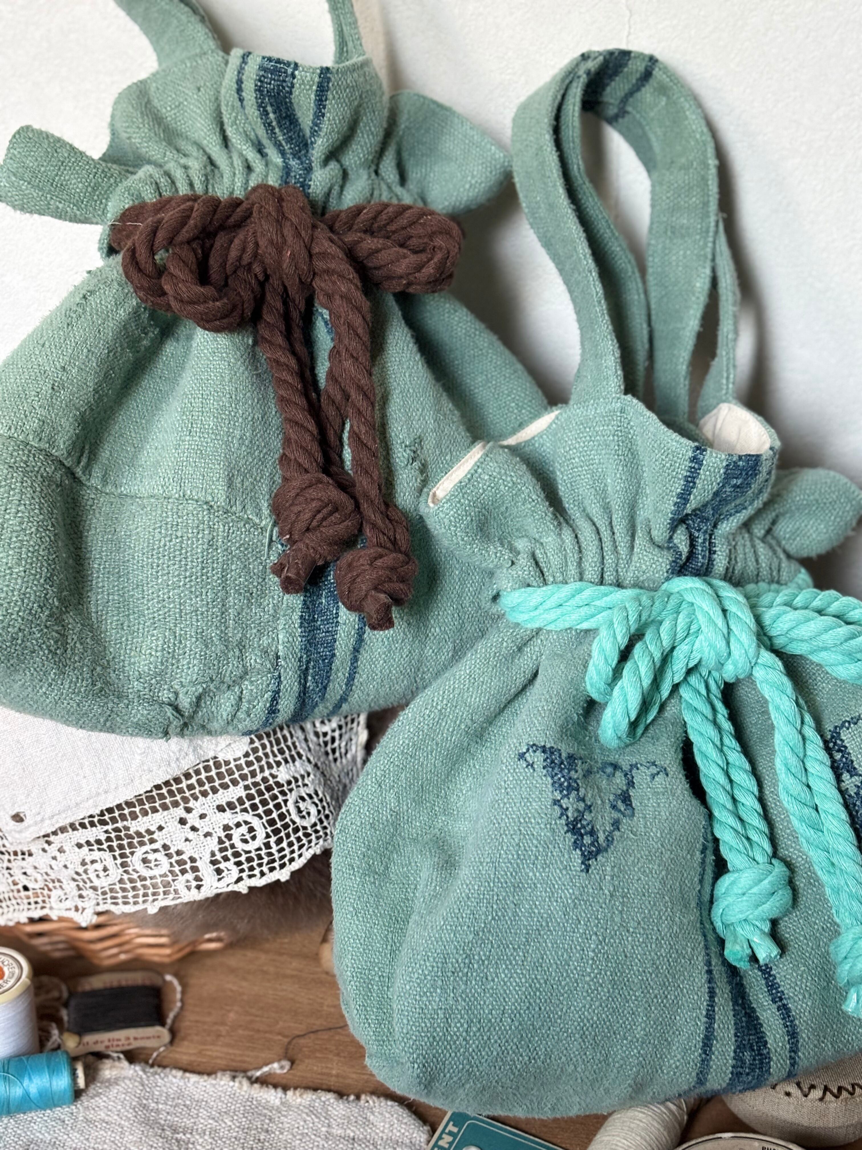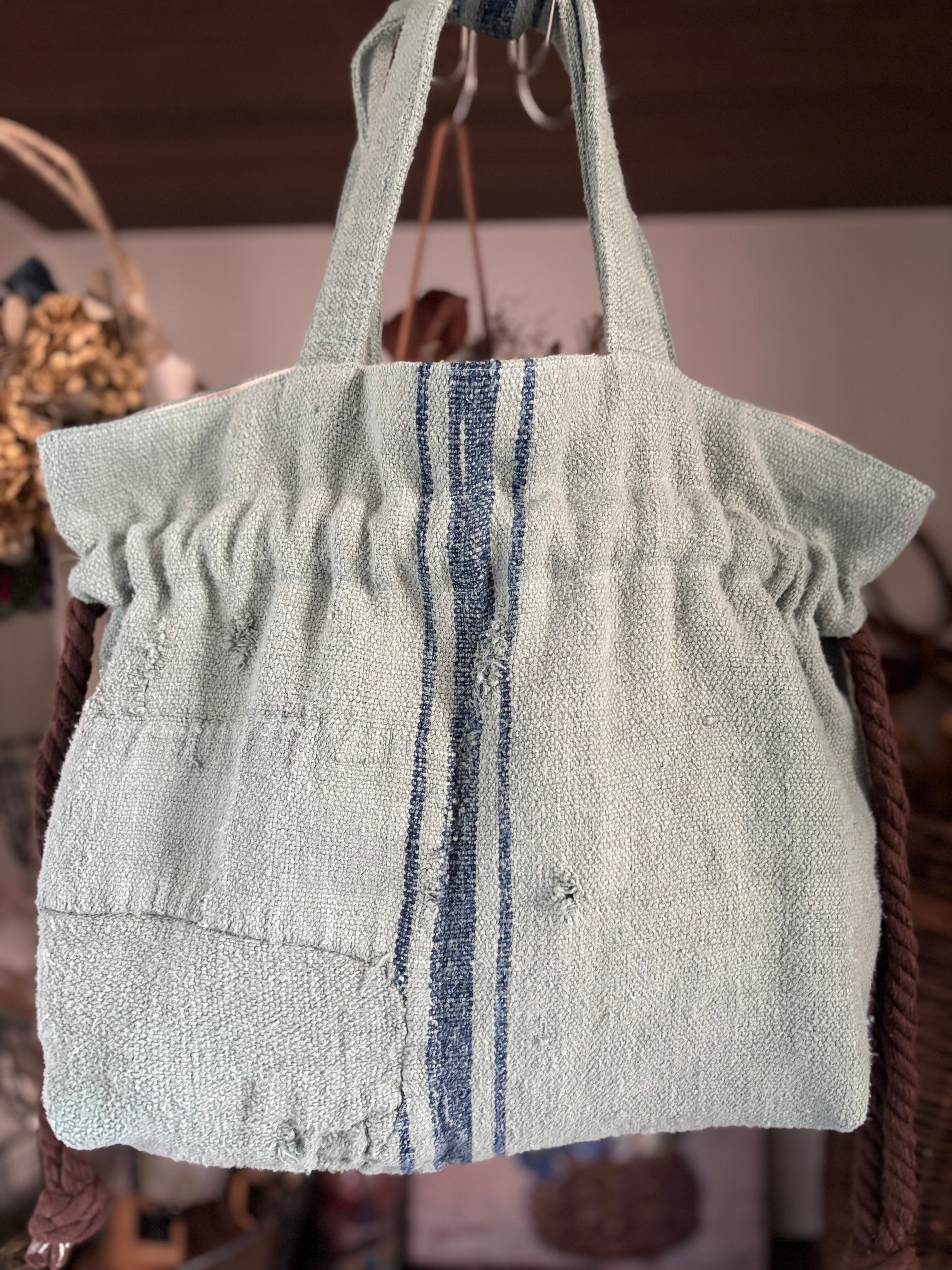 コロンと巾着バッグ♡ミントグリーンつぎはぎチャン