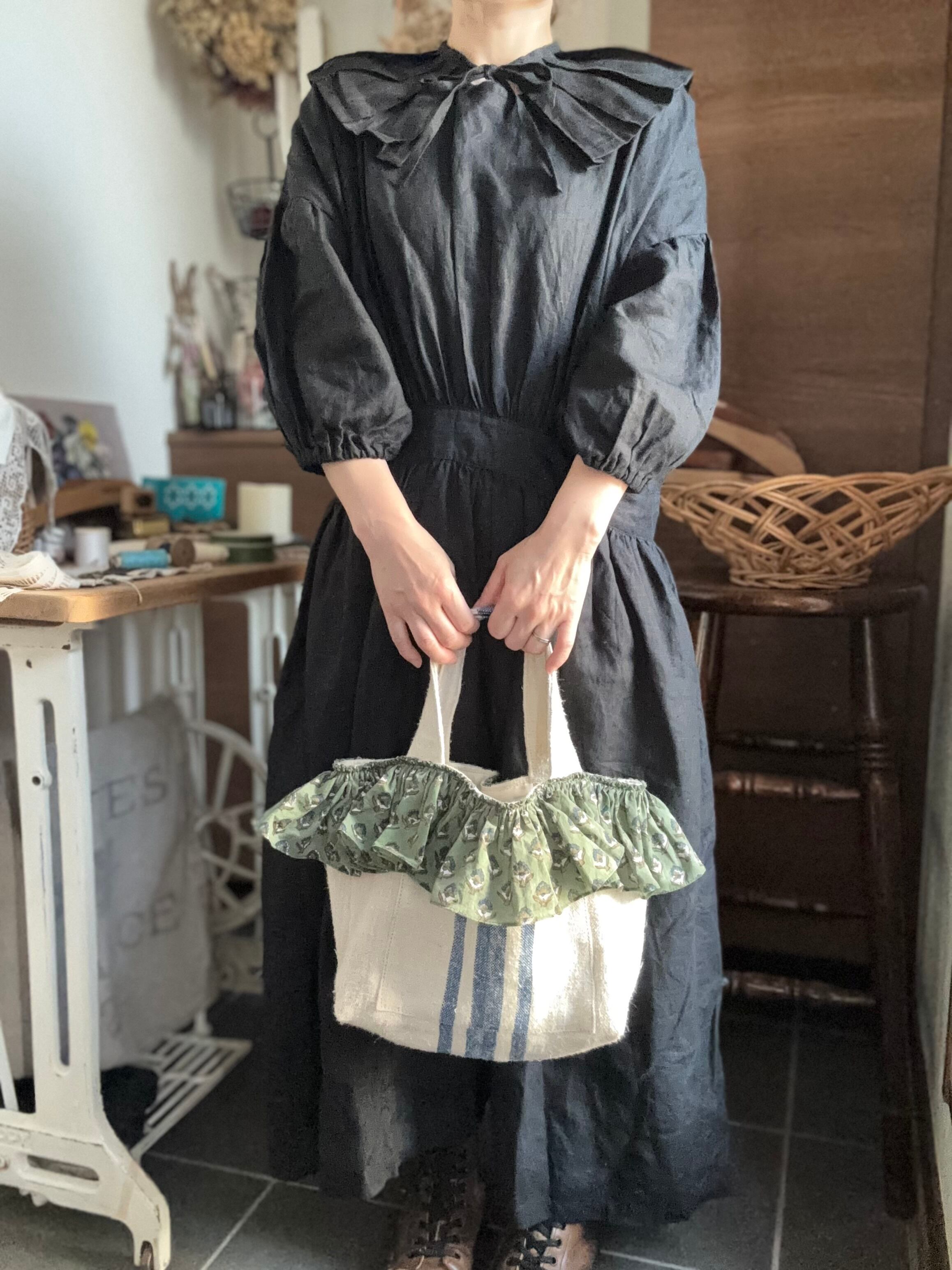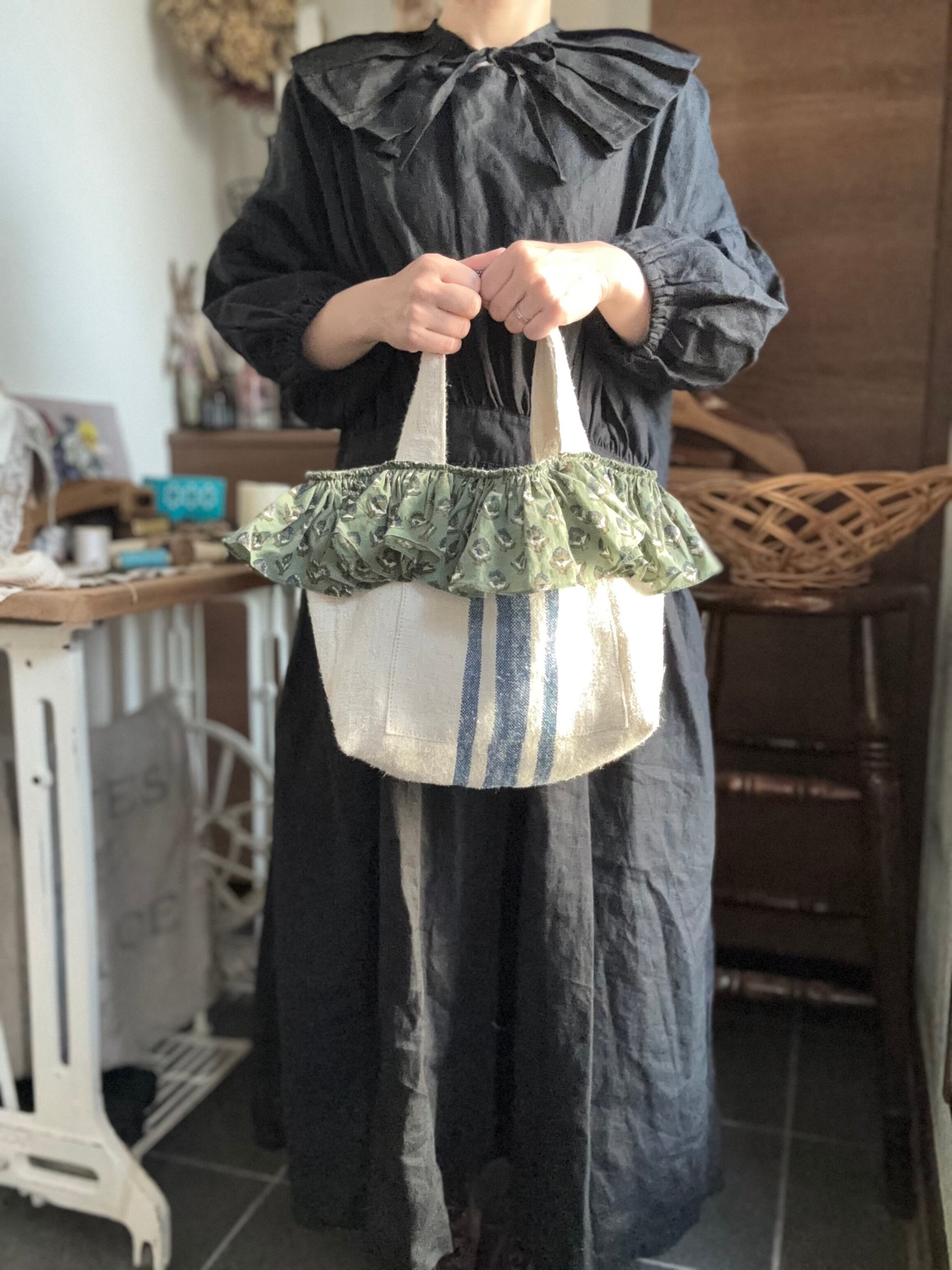 ♡新作♡antique linen×cottonフリルトート♡