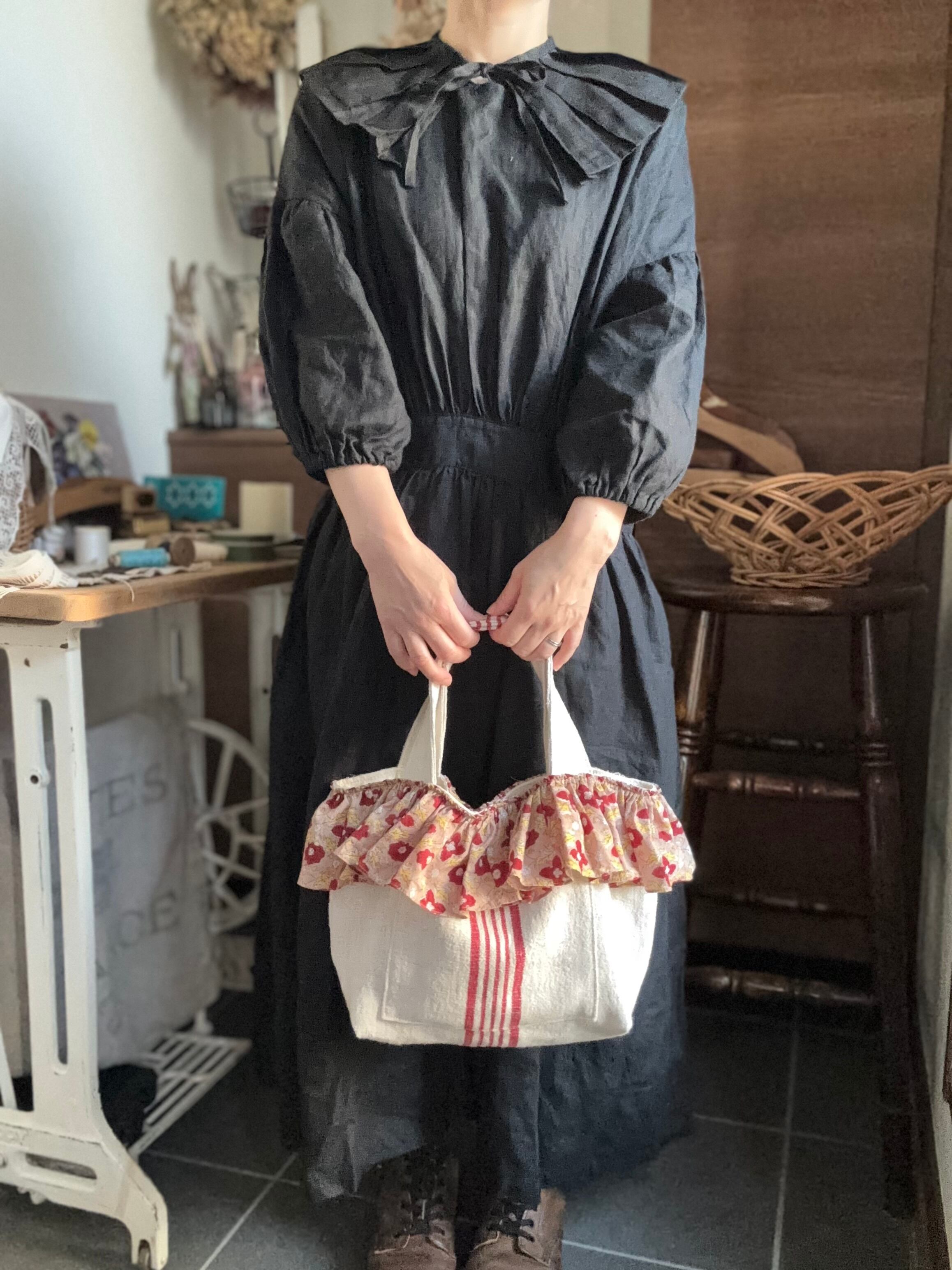 ♡Tさま専用♡新作♡antique linen×cottonフリルトート♡
