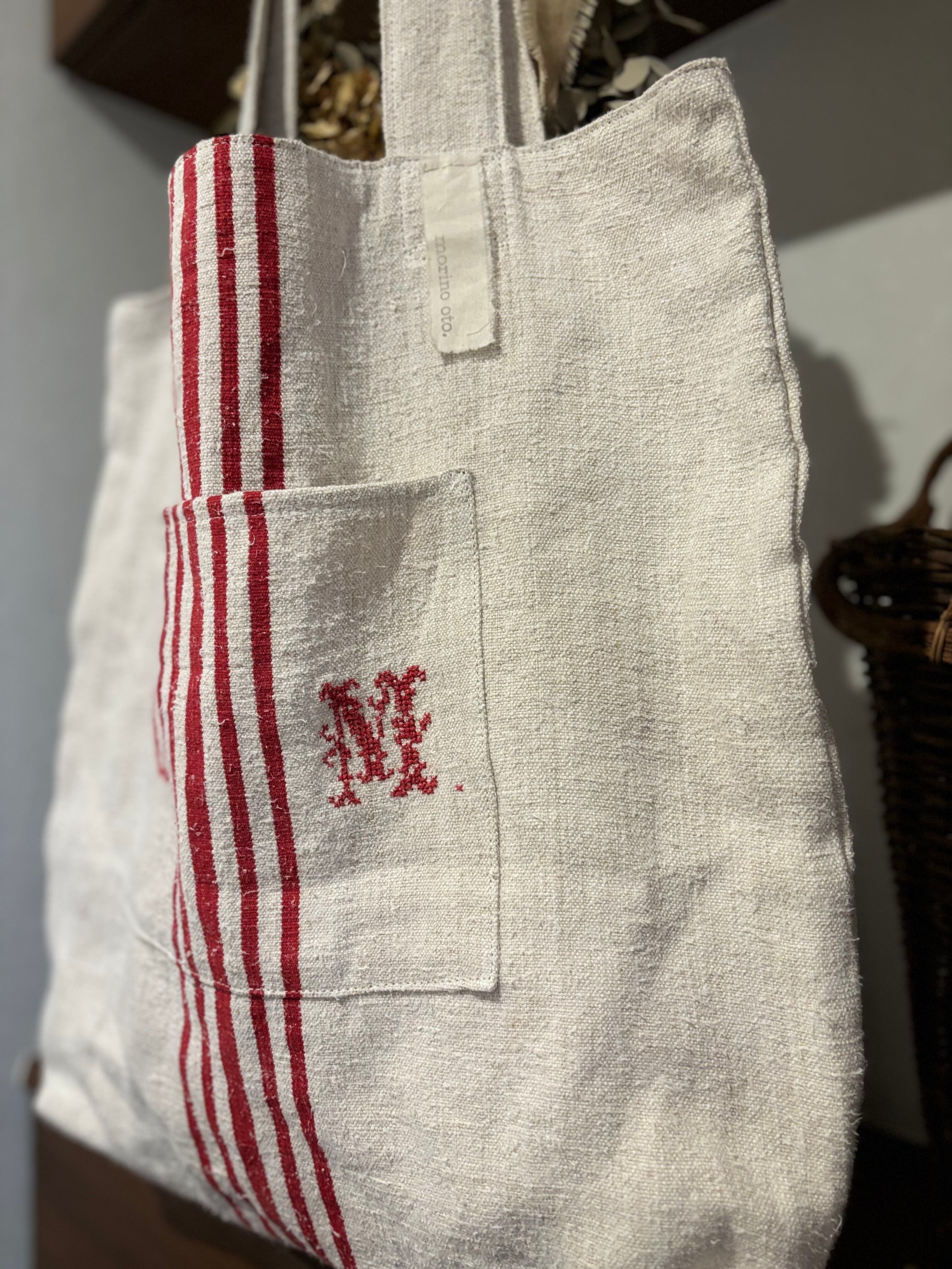 アンティークリネンのグレインサック(穀物袋)から製作したトートバッグ。
