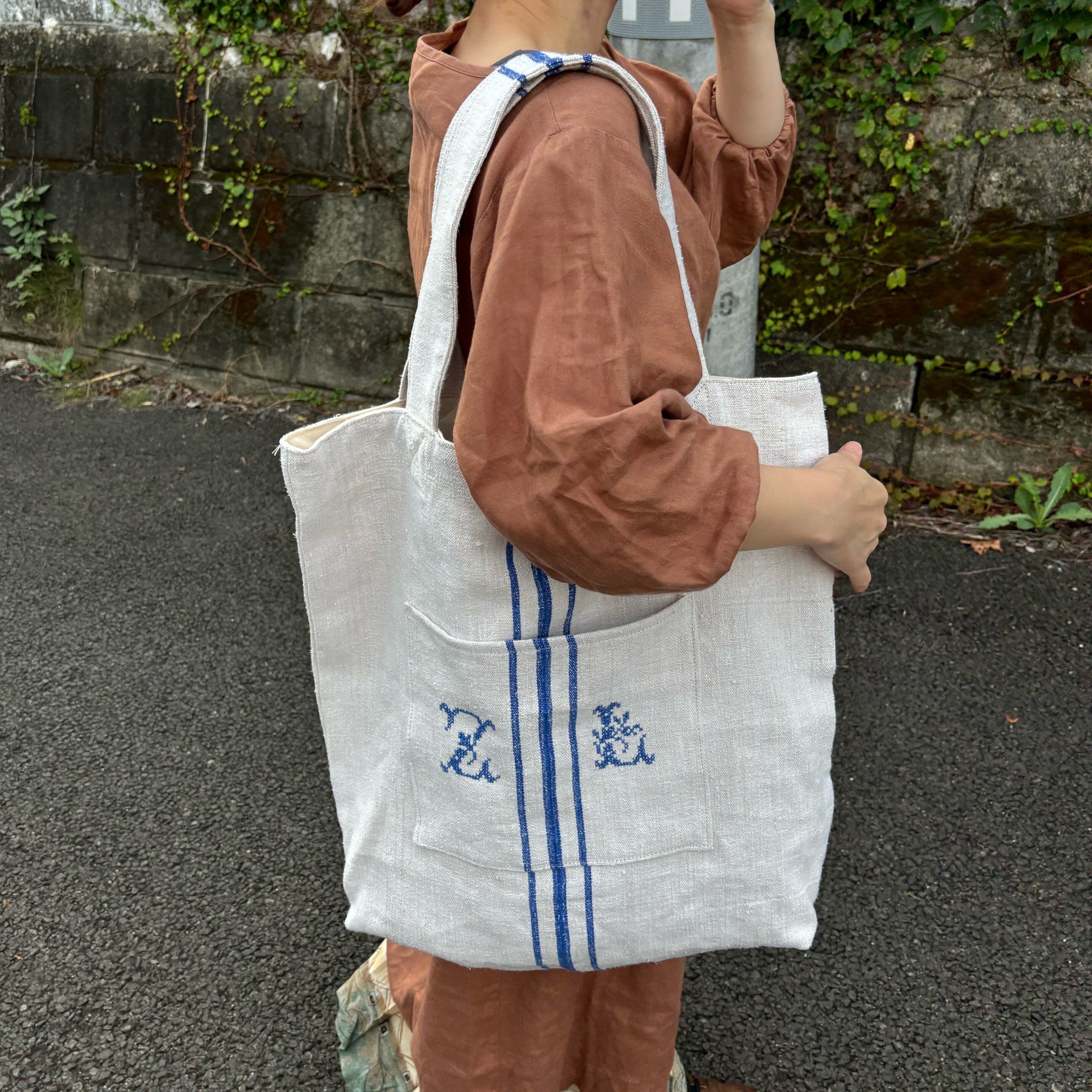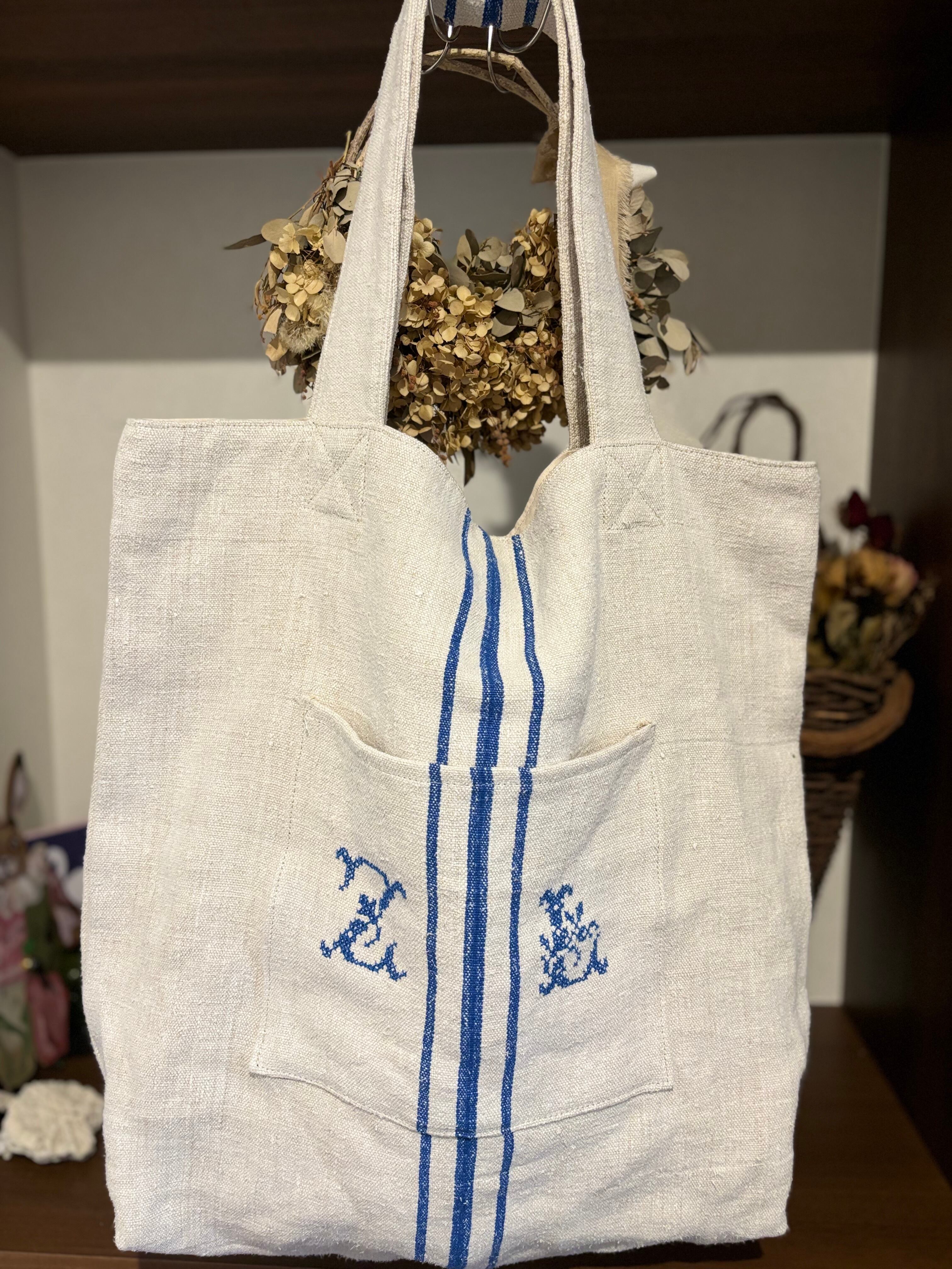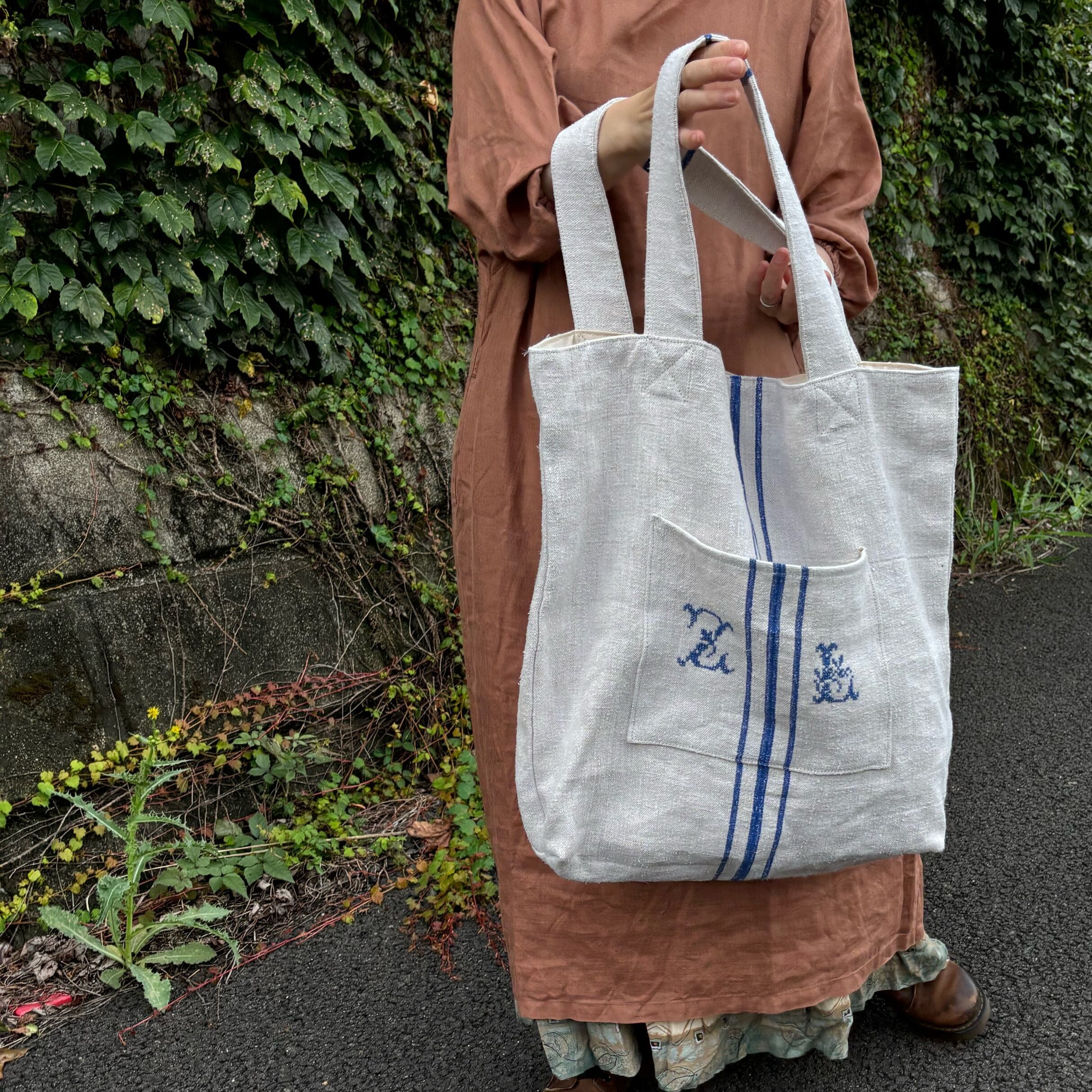 アンティークリネンのグレインサック(穀物袋)から製作したトートバッグ。