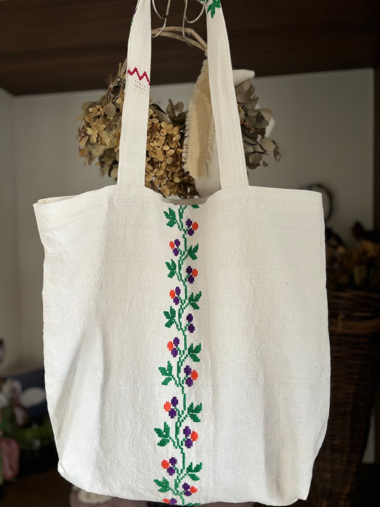 アンティークハンガリアンリネン 木の実刺繍トート Ⅰ