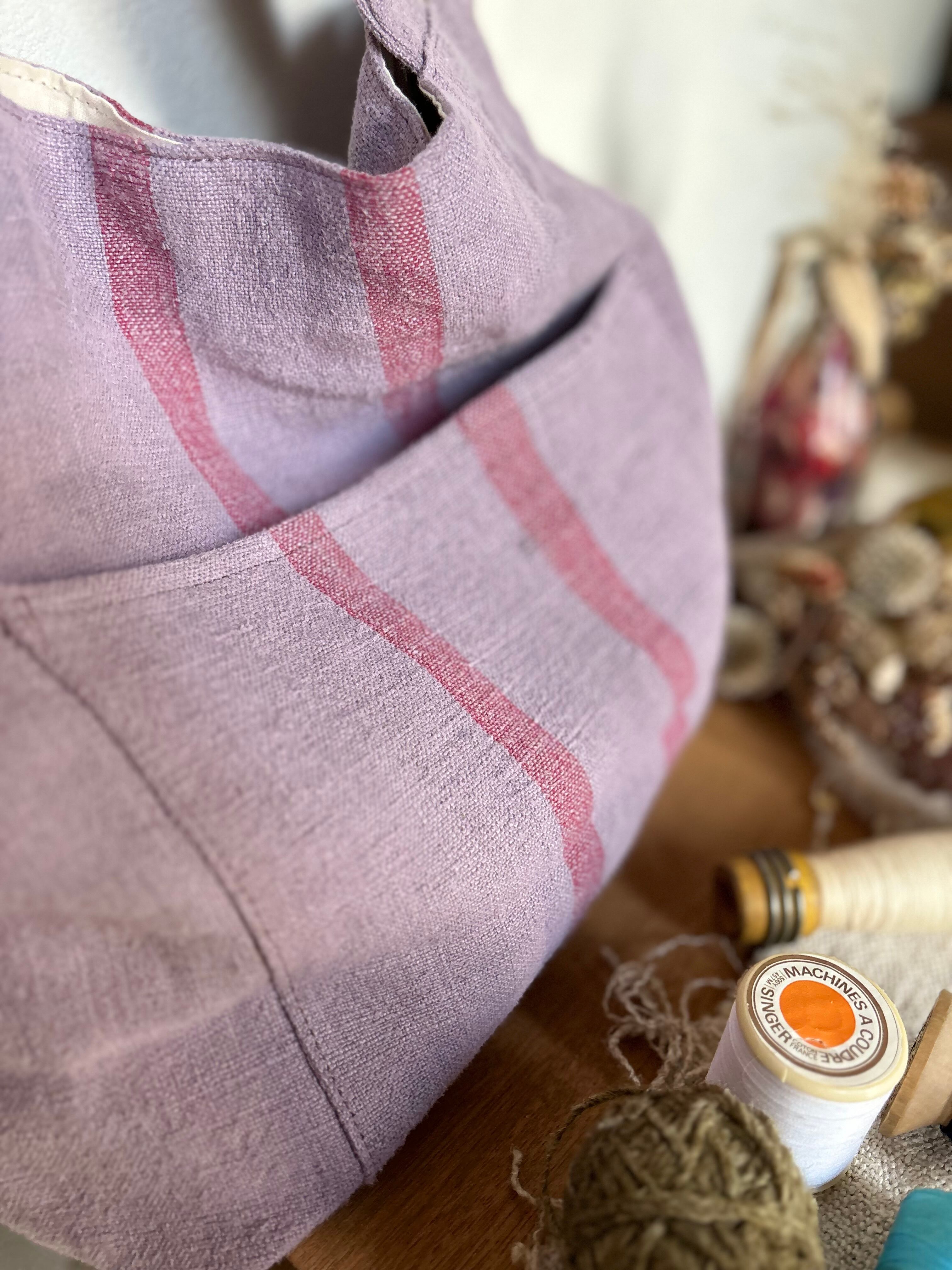 このトートバッグは、特別なアンティークリネングレインサックを使用しており、独特の風合いが日常のスタイルに優しいアクセントを加えてくれます!