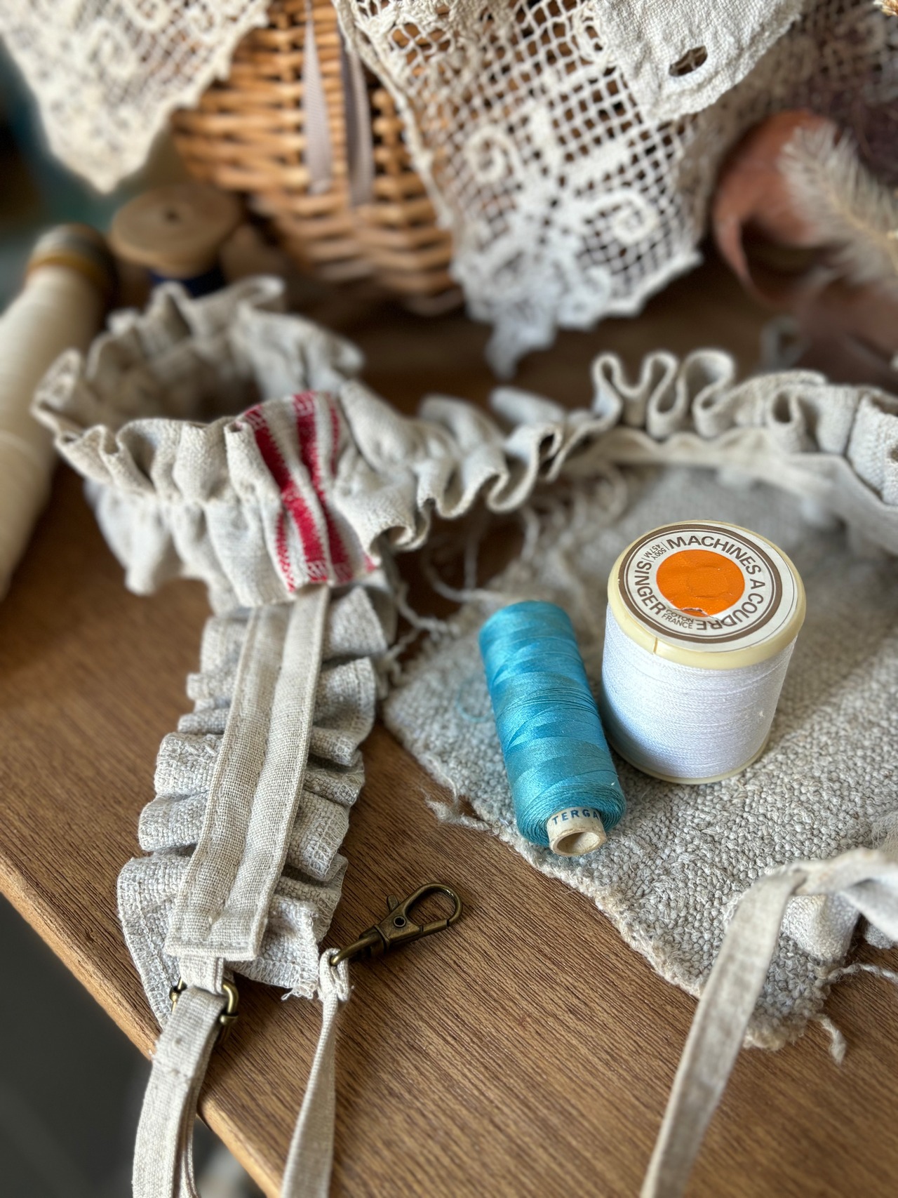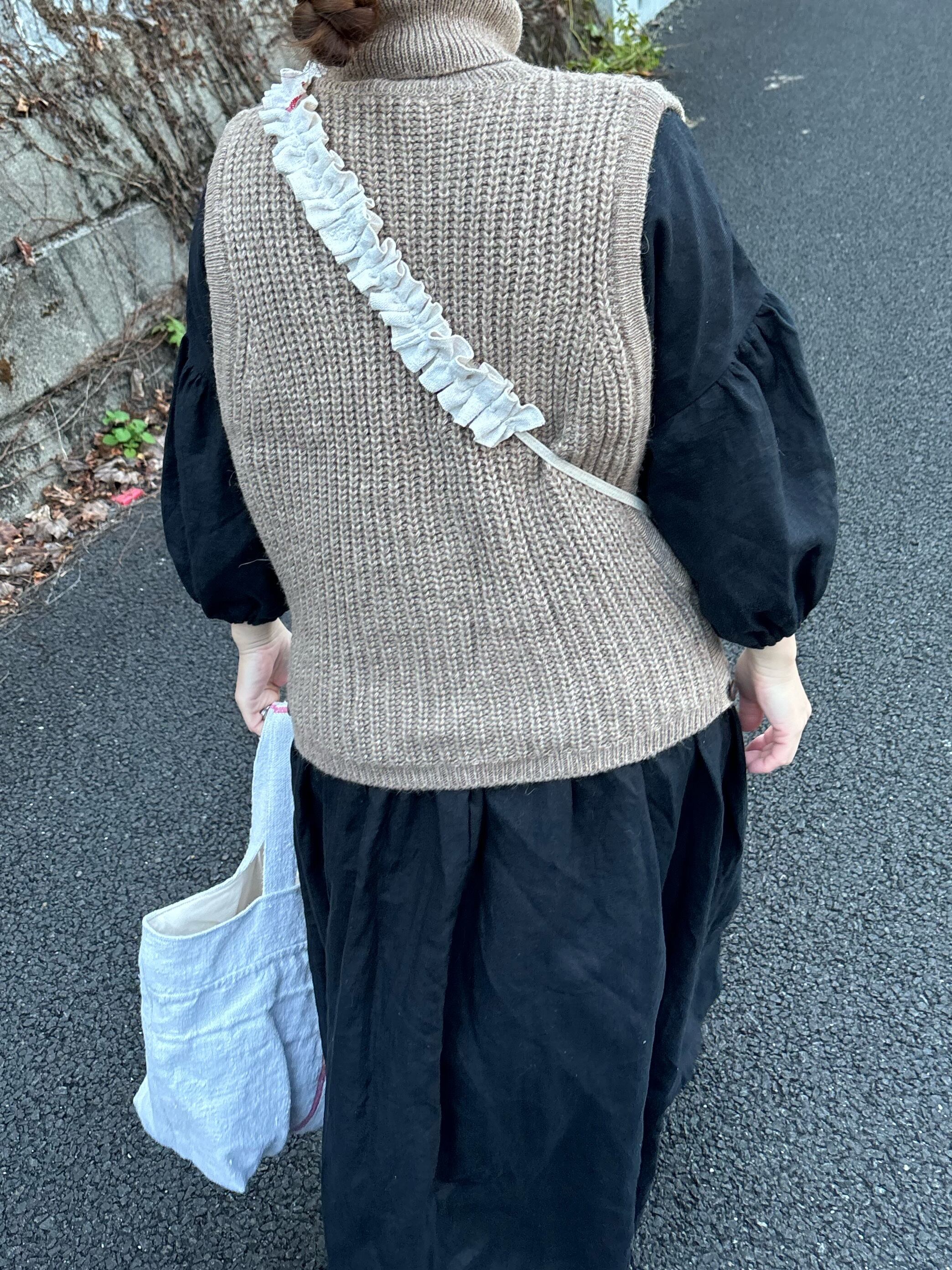 このショルダーは人気のアンティークリネングレインサックを使用し、可愛らしいフリフリデザインが特徴です。新作のアプローチが、あなたの日常にちょっぴり特別なアクセントを加えてくれます!